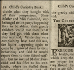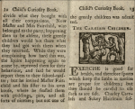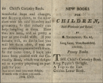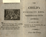The Child’s Curiosity Book, Embellished With Cuts Published between 139 and 1839 according to http://www.arhive.org features simple moral tales and rustic woodcuts. Share this: Click to share on X (Opens in new window) X Click to share on Facebook (Opens in new window) Facebook Like Loading...